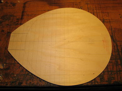 I chose a simple teardrop shape body for the guitar. The top and back were cut from bass wood ply for maximum strength.