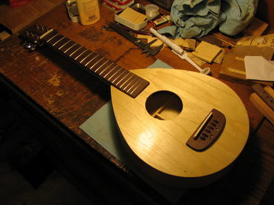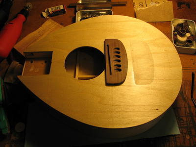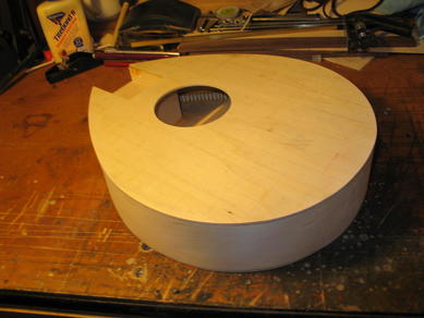 Here the body of the guitar has been glued together. There is no fancy binding on the edges though nothing would have prevented me from doing that.